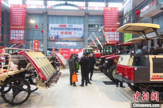 3月6日,江西南昌,2021中部(江西)农业机械及零部件展览会现场,众多观众正在观展。刘力鑫 摄